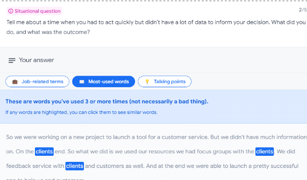 Google Interview Warmup simulates interviews for specific fields and critiques your use of job-related terms and talking points.