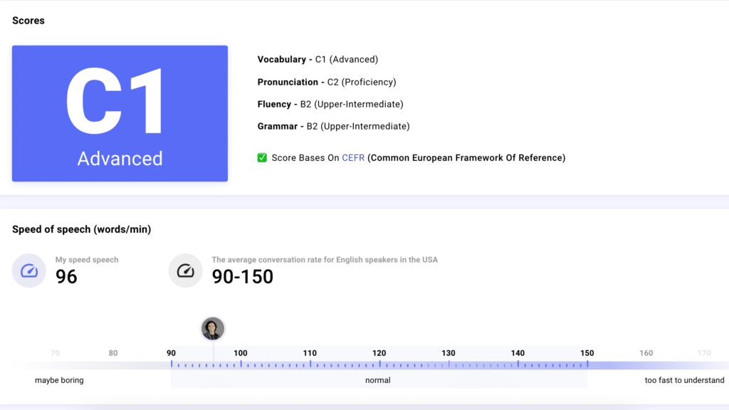 SmallTalk2Me is like having a mock interview. The platform features an AI hiring manager that provides feedback on the strengths and improvement areas of your interview responses. It also offers advice on your English proficiency, use of fillers, and overall fluency. Additionally, there’s an AI-powered vocabulary booster designed to enhance your vocabulary and introduce new words relevant to your field.